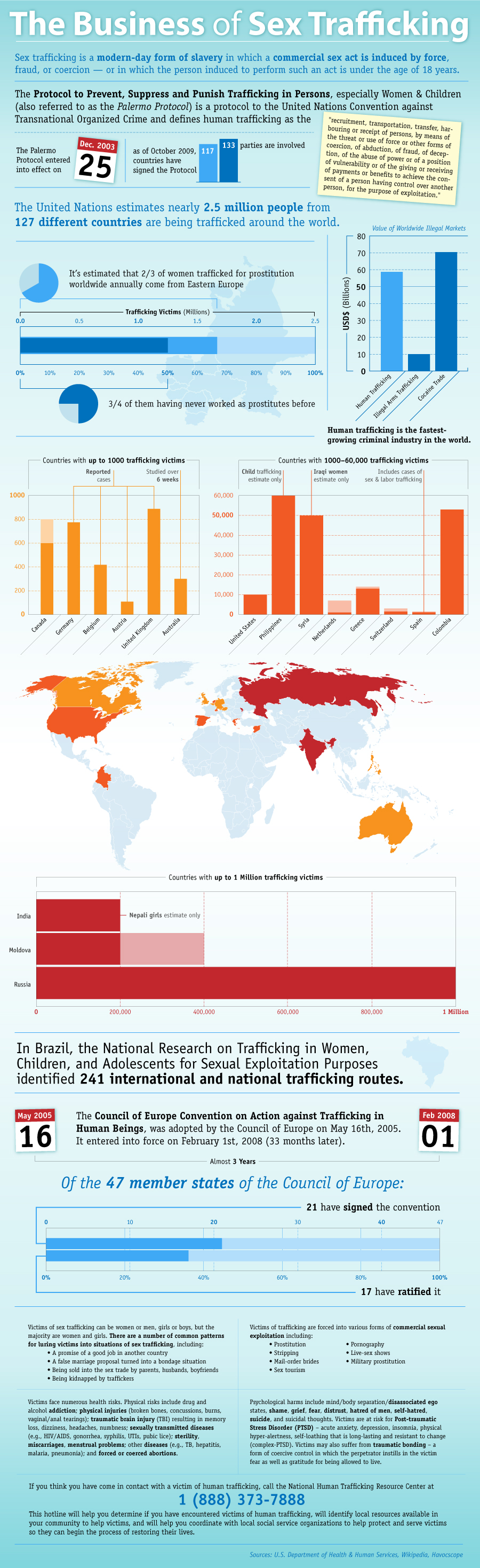 Sex trafficking is a criminal business in which women and children are forced or coerced into providing sex services. An estimated 2.5 million people are victims of this modern-day form of slavery which has grown into an ugly and sophisticated $50 billion world wide business. Human trafficking is the fastest growing criminal industry in the world, despite the Protocol to Prevent, Suppress and Punish Trafficking in Persons, which went into effect on December 25, 2003.